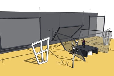 Com essa premissa, eu sabia que o elemento primordial para esse cenário seria a transparência. A idéia foi a de materializar um mundo que trouxesse poucos elementos de identificação, mas que permitisse que o vazio fosse completado por cada expectador de acordo com a sua visão pessoal de distopia.