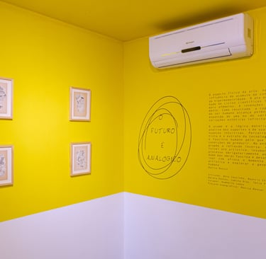 O exame e a lógica materialista, a partir da análise dos suportes e de suas combinações, possui nuances intuitivas. Percorrer o trabalho do artista e o extrato da tecnologia disponível revela o fascínio humano pelo que a racionalidade tem condições de produzir. No entanto, esta exposição propõe a reflexão inversa: observar o insubstituível ato artístico, insubordinado à técnica, um processo obrigatoriamente analógico. A fragilidade das obras fascina e desafia a proposta: examinar com afinco o momento anterior à criação artística e explorar a gênese da sensibilidade humana.
