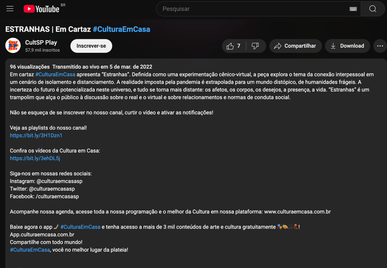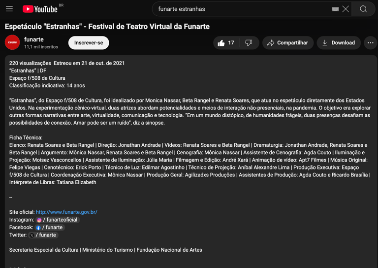 Coordenação executiva, cenografia, legendagem e janela de libras do espetáculo virtual Estranhas para Funarte