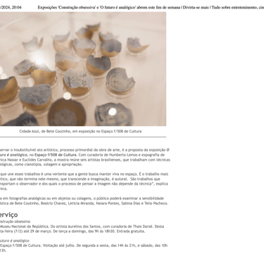 O exame e a lógica materialista, a partir da análise dos suportes e de suas combinações, possui nuances intuitivas. Percorrer o trabalho do artista e o extrato da tecnologia disponível revela o fascínio humano pelo que a racionalidade tem condições de produzir. No entanto, esta exposição propõe a reflexão inversa: observar o insubstituível ato artístico, insubordinado à técnica, um processo obrigatoriamente analógico. A fragilidade das obras fascina e desafia a proposta: examinar com afinco o momento anterior à criação artística e explorar a gênese da sensibilidade humana.