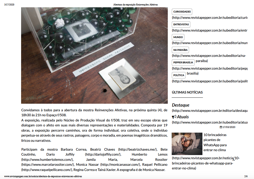 Expografia e produção para exposição coletiva Reinvenções Afetivas